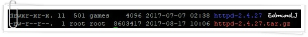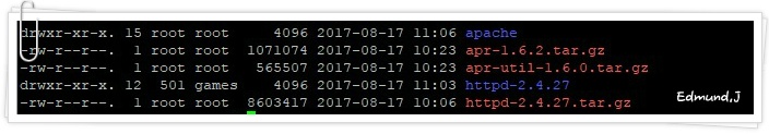 1) 압축해제 시 아래와 같이 httpd-2.4.27 디렉토리가 생성된다.